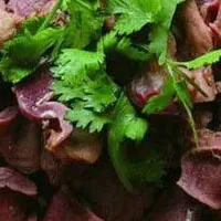 牛雜割是西北穆斯林的一種傳統(tǒng)的早餐食品。牛羊雜割,據(jù)考證在明代《徐霞客游記》中就有關(guān)于穆斯林做雜割的記載。河州人制作雜割方法很精致,具有特殊風(fēng)味,受到人們的好評(píng)。選用的雜割,必須是當(dāng)天宰的牛的頭、蹄、肚和心肺等,隔了夜的就不易洗凈。洗雜割要用流水,經(jīng)過(guò)嚴(yán)格的燎、刮、燙、漂、洗等工序后,即用猛火煮20分鐘左右,把湯全部倒出,然后加開(kāi)水,下調(diào)料,用文火燉煮。調(diào)料多為草果、黑(白)胡椒、食鹽、花椒,以及少量姜片等。當(dāng)燉到筋骨自然脫落時(shí),肉也就爛了,然后把雜割撈出鍋,放在案板上。湯中加上牛油和味精,即可食用。每碗割幾片雜割,澆上雜割湯,有的泡麻花,有的泡鍋盔。可謂物美價(jià)廉,十分可口。( 敦煌)