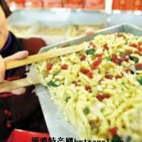 1.炸絲子:將雞蛋和水適量打勻、和面,揉成團后,餳片刻,即用搟面杖搟成薄片,再用刀切成8厘米長的掛面條狀,篩凈撲面,入油鍋炸成乳黃色即可。