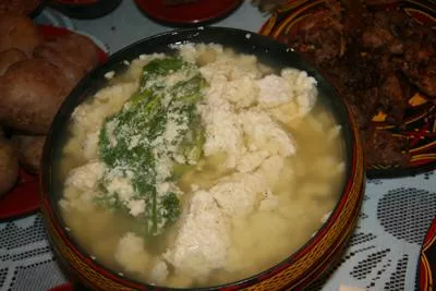 渣菜——也叫菜豆腐、豆沫,制作渣菜也叫馇渣。用料為各種菜末和豆粕。乳山習(xí)慣叫野菜為“山菜”,叫自家種植的菜為“家菜”,山菜、家菜中適合馇渣的都很多。野菜以山苜楂、薺菜、面曲曲、麥粒蒿、兔耳朵、掃帚菜、灰菜、薺薺菜、螞蚱菜、洋槐花、榆樹葉等為佳;家菜如蘿卜葉子、嫩芋頭葉、鮮地瓜葉、大白菜幫子、小白菜等都行。馇渣前要先用開水把菜淖一下,至半熟即可,為的是容易浸掉苦澀味。浸泡時間、換水次數(shù)要根據(jù)菜的苦澀程度而定。沒有苦味的菜不必浸泡,以免營養(yǎng)流失。菜浸泡好了,切成細末就行了。菜切好了,粕磨好了,再就是鍋上的活兒了。先用少許食油擦擦鍋,油千萬別放多了,能起到防止粘鍋的作用就行。添少量水后把菜末放進鍋里,菜末之上用粕覆蓋,急火加熱。底層水沸有響聲后,開始用鏟子貼鍋底頻頻翻轉(zhuǎn)菜末及豆粕,使之受熱平均、攪拌勻稱,然后蓋上鍋蓋,用慢火燉,至水將干、干濕合適時即可出鍋。一家馇渣能香半條街,馇好后,主人家送你一碗,送他一碟,鄰里間分享品嘗。從前,村街上有兩大風(fēng)景:碾子和泊磨。泊磨也叫水磨,但不是以水為動力的那種,是相對于室內(nèi)加工面粉的干磨而言的。泊磨多是用那些退役下來的干磨疊加組成,下面的做支架,上面的兩頁做推粕用。推粕就是把事先泡軟的黃豆磨成生豆糊,這是做豆腐或者馇渣的必有工序。磨粕時要把豆子一點點勻稱地掰進磨眼里,同時還要向磨眼加水。磨豆粕是有技巧的,豆子掰多了,磨出來的粕就粗糙;掰少了,轉(zhuǎn)空磨浪費時間;水加多了,磨唇掛不住,粕就會流到地上;加少了沾磨,粕下不來。推磨粕的人要一手扶著磨棍兒,一手拿著長柄平頭木勺子,一邊推磨一邊把磨唇上的粕刮到旁邊的盆子里去。好手刮粕,動作敏捷,不滴不掉,姿態(tài)優(yōu)美,儼然是表現(xiàn)女性勞動的美妙舞蹈。