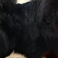 純種藏獒具有如下典型特征:頭大而方,額面寬,頭頂略呈圓形。眼睛黑黃,四點眼,眉上有黃色或白色圓點毛。嘴短而寬,嘴角略垂。鼻梁短,鼻頭寬、黑色。耳朵大,呈 V字形,下垂于兩側。頸粗有力,頸下有垂。四肢粗壯,前肢粗直,后肢腿部寬,肌肉發(fā)達。尾大而側卷,尾根高,下垂于飛節(jié),緊張時高舉。全身被毛長而密,身毛長10~ 15厘米,尾毛長20-30厘米,毛色以黑色為主,其次是黃色、白色、青色和灰色,頭下部、胸前、腹下及四肢下部大多有黃色或灰色的毛。成年犬身高70-85厘米,體重在 75-95千克。8月齡可達性成熟,母犬每年初冬(10-12 月份)發(fā)情一次,但在海拔較低的半農半牧區(qū),氣候溫暖,管理適當,則可在一年內春秋兩次發(fā)情。每窩產仔4-5只,多者可達7-8只。壽命為10-16年。