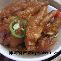 近幾年,香港、澳門(mén)等地有一個(gè)醬菜膾炙人口,幾乎大小酒家飯店都有供應(yīng),共名雅致,叫鳳爪。鳳爪乃雞腳的雅稱(chēng),譽(yù)雞為鳳,出自宮廷祭禮,《明宮史》有記。雞腳皮厚、骨粗、肉少,以往多用作熬湯或燉品的鋪料,如杏元鳳爪燉海狗,有的甚至作下腳料處理。為何現(xiàn)在派上大用湯?據(jù)說(shuō),雞腳含有較豐富的膠原蛋白,而膠原蛋白有消除面部皺紋之妙用。 制 法 (1)煮將雞腳用水煮至將熟,煮的水要酌加醋和飴糖。 (2)炸炸至熟透色紅即可。炸后要漂水,去油膩,使皮骨分而不離,皮層收縮起皺紋,入口即化。 (3)蒸蒸時(shí)加醬料芡汁,蒸至軟爛即可。加何種醬料,可隨地方風(fēng)味,還可隨時(shí)令而有不同。目前,廣東多用蠔油、桂林醬、柱候醬、OK汁等,但沒(méi)有一個(gè)店是相同的。 特 點(diǎn) 雞腳色澤絳紅,皮層脹大而有皺紋,故有皺紋鳳爪之稱(chēng)。皮下飽含芡汁,有灌腸之感。食時(shí),皮骨易離,皮軟滑,骨酥爛,老少咸宜。