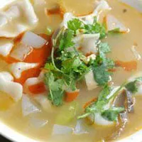 涼粉餃子 河南 ? 洛陽 ? 洛寧 洛寧人大年初一第一頓,就是涼粉餃子。傳說是以前餃子不夠吃就添加了涼粉增加份量,現(xiàn)在已經(jīng)成了別有風(fēng)味的洛寧小吃。涼粉有清涼粉和黃涼粉,清涼粉是淀粉制成,黃涼粉是玉谷面制成。涼粉餃子湯里,除了涼粉餃子外,還可以加入肉和菜類。一家人熱熱呵呵在一起,香噴噴地吃上一頓初一飯,那是圓滿??腿藖砹藷狎v騰地端上一碗涼粉餃子,那是一份親情。 信息來源:縣旅游局 贊 (0) 39 151 生成海報(bào) 洛寧漿面條 下一篇 0001-01-01 東大寺鍋盔 上一篇 0001-01-01 相關(guān)推薦