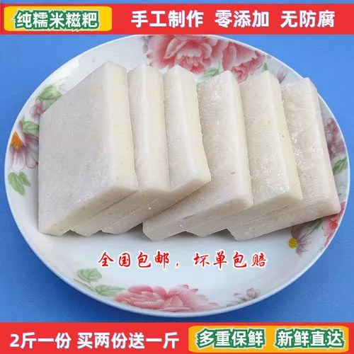 將整團(tuán)的糍粑都拿起來放在一張大門板上,平整成大約5厘米高的樣子,等糍粑慢慢變冷變硬后,用刀切成塊,用瓦缸或桶裝新鮮的冷水浸泡。春節(jié)時(shí)可以將糍粑油炸、火烤、打湯等,來招呼客人或自己食用。