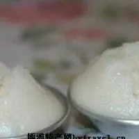碗兒糕的做法很簡單,先將大米淘洗干凈,用清水浸泡8小時左右,然后將水帶米舀入石磨中磨成米漿,將少部分米漿下鍋煮熟制成“熟芡”備用,白糖、紅糖分別融化備用;其余的米漿濾干水后,用布口袋裝起讓其自然發(fā)酵。將融化的白糖與一半熟芡摻入部分米漿制成白漿,融化的紅糖與另一半熟芡和勻后摻入剩下的米漿制成黃漿,待4個小時發(fā)酵后在蒸前放少許堿面攪均;上鍋蒸時把黃、白兩種米漿分別舀入1的凹碗形模具內,表面灑上一點芝麻,放入蒸屜內大火蒸,蒸熟至“開花”后取出即成。