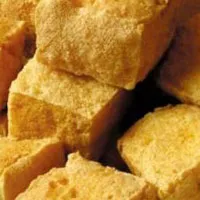 選用本地上好黃豆為原料,做成豆腐,然后采用油炸,這就成了客家炸豆腐。