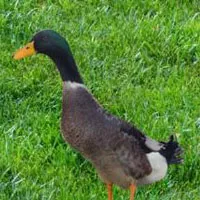 公鴨:頭頸羽毛為墨綠有金屬光澤色,背部羽毛為棕黑相間略帶白點,并帶金屬光澤,尾羽為黑白色,性羽呈墨綠色向背彎曲,翅膀上的羽毛墨綠白相間。
