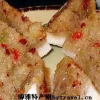 糯米洗浸、晾干,蓮子、百合、紅棗、冬瓜糖等煮熟,連同“八寶”中(豆沙除外)的其他料在一個盤子里擺放整齊,將糯米炒到八、九成熟時下蜜糖(或白糖)、香油,加上豆沙置另一盤中,然后將糯米蒸熟反扣于已裝八寶料的盤子中,這樣,原大盤中的八寶就露于盤子上層。八寶飯軟糯粘滑,造型美觀,口味清甜,是家庭團(tuán)聚、婚嫁喜宴必不可少、既可當(dāng)菜又可當(dāng)飯的一道菜。