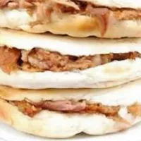 陜西有個(gè)白吉鎮(zhèn)(今咸陽(yáng)市彬縣的北極鎮(zhèn)),這個(gè)地方的餅很好吃,很有特色,所以把這種饃叫白吉饃。白吉饃據(jù)稱(chēng)源自咸陽(yáng)。是用上好面粉揉制后做成餅形,置鐵鐺板上略烤成型,放入爐膛側(cè)立,上下隔著鐵鐺板的炭火烘烤,稍頃翻面,雙面焦黃即可。我一直以為烹制食物,外焦里嫩是難得的境界。上品白吉饃揉制充分,火候恰到好處.制好的白吉饃形似"鐵圈虎背菊花心",皮薄松脆,內(nèi)心軟綿??蓡为?dú)食用,配臘汁肉同食味道更佳。