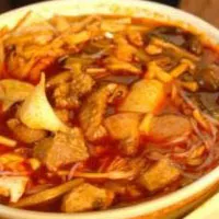 特點(diǎn):疙瘩餡心清素,臊子肉丁酥爛,葷素皆備。湯汁油紅晶亮,味道酸、辣、油香俱全。特別是辣子辣而不烈。