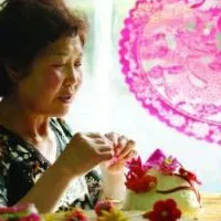 隴東“巧媳婦”最值得稱贊的就是手里的面活兒,她們精通饃、餅、面條、油糕、點(diǎn)心等各種面食的做法,常常出新又出彩。今年58歲的孫彩玲就是西峰區(qū)寨子鄉(xiāng)遠(yuǎn)近聞名的“能人”,她制作的花饃饃色澤鮮亮、造型豐富,猶如件件精美的藝術(shù)品。圓圓的蒸饃上,時(shí)而有兩只喜鵲飛上枝頭叫喳喳,時(shí)而有幾只錦鯉游來(lái)游去,再點(diǎn)綴幾朵嬌艷欲滴的面花,看上去就像一幅充滿生活氣息的水彩畫(huà)。面花多是用手捏塑而成,借助剪刀、梳子、鑷子以及自制的壓花紋的小工具來(lái)做造型。孫彩玲將做好的彩色面皮壓出花形,再層層卷起,片刻工夫,含飽待放的花骨朵已成形,只見(jiàn)她用手?jǐn)D一擠,捏一捏,再撥一撥,層層花瓣順勢(shì)打開(kāi),面花忽然綻放開(kāi)來(lái),似在眼前吐露芬芳。孫彩玲說(shuō),她對(duì)花有著特別的偏愛(ài),走到哪里都要看看花,并記下每種花的樣子,一有時(shí)間就琢磨著怎么把它們做出來(lái)。
