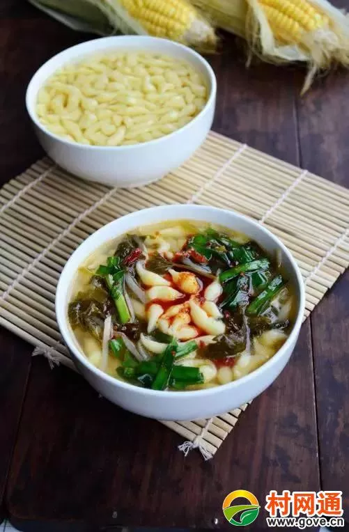 面魚當(dāng)?shù)厝朔Q為蝌蚪、粉魚。多用玉米、蕎面粉做成。制作時(shí),先把鍋中的水燒開,然后用左手抓面粉徐徐灑入鍋中,右手持搟面杖或叉棍快速不停地旋轉(zhuǎn)攪動(dòng),使面粉與水相融化,這樣不停地灑粉入鍋,不停地用叉杖攪動(dòng),待稠硬成團(tuán)后,再沿鍋淋入熱水,用文火慢慢馇熟,使不至焦糊,然后用手勺把馇煮好的面粥舀入漏勺,反復(fù)揉壓,使其從漏勺上許多小孔中直接滴入盛涼水的盆內(nèi),遇冷后,即成面魚。玉米面粉有黃、白之分,做成的面魚黃白分明。食用時(shí),既可吃“酸”的,也可吃“甜”的。酸吃即在面魚中澆入熗好的漿水,再配上油潑辣子、香菜末、精鹽、炒熟的韭菜等調(diào)料,酸鮮奇香,滑利爽口;甜吃即在面魚中澆上用豆腐丁、西紅柿、肉丁、菠菜等燴制而成的湯頭,再配以醋等調(diào)料,鮮香濃郁、清爽無(wú)比的美食。