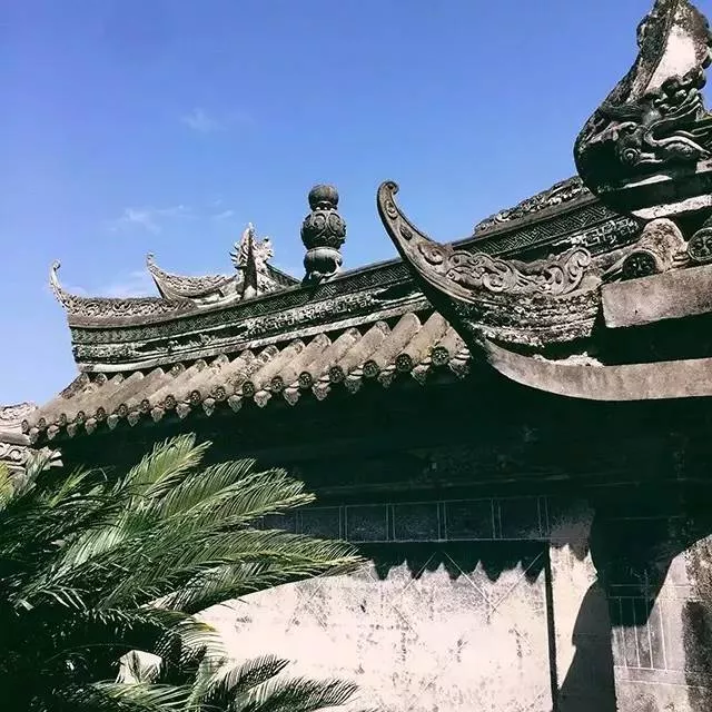 上圖里也是白墻黑瓦,藍(lán)天白云,但這里是溫江的陳家大院。