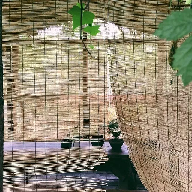 園中的小院,被樹林遮蔽的嚴(yán)實,只有斑駁的幾點陽光能穿透層層的樹葉到達(dá)地面,投身到竹簾上。