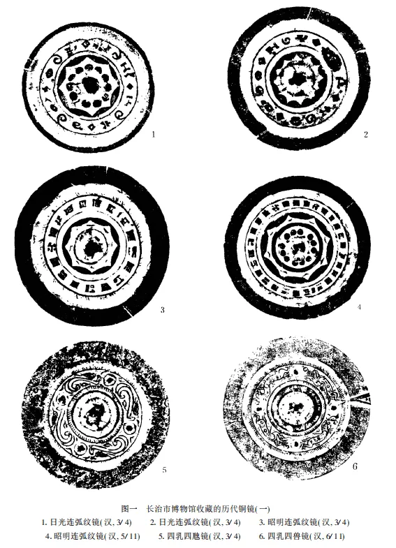 長治市博物館收藏的歷代銅鏡《文物季刊》1996年04期崔利民(長治市博物館)自從70年代以來,我館收藏了大量的歷代銅鏡,既有征集品,又有出土品,其中有些具有較高的歷史和藝術(shù)價值,現(xiàn)將其部分介紹如下:一漢代銅鏡日光連弧紋鏡2件。一件直徑7、緣厚0.7厘米。圓鈕,連珠紋鈕座,座外飾內(nèi)向八連弧紋一周。主區(qū)雙線紋間有銘文:“見日之光,天下大明。”每字間用“の”或“◇”隔開,窄素緣。1