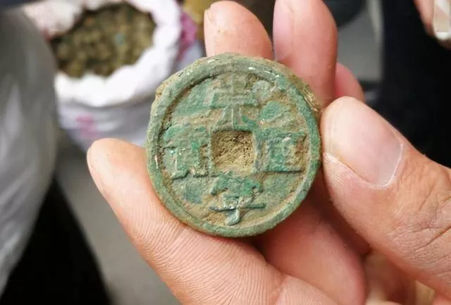 王某和施工隊(duì)員往里面一瞅,不得了!滿洞窟的錢吶!而且這錢還不是普通的錢,而是銅幣??礃幼樱呀?jīng)在這里放了很久了。王某心想,這下可發(fā)財(cái)了,這些錢一定是古董,能值很高的價(jià)格。