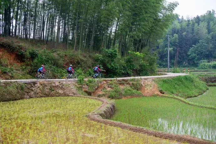 正好遇到一陳姓老漢也在自家門口吃午飯,得知我們一行帶自行車是從狀元嶺上下來,豎起了大姆指,并詳細(xì)地告訴我們這狀元嶺名的來歷。