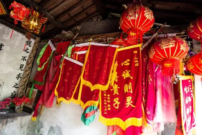 從廟的周圍環(huán)境看,這里常有人來打掃,小廟宇中掛滿了信徒們送來的旌旗,狀元嶺上的這座土地爺還是很靈光的,有求必應(yīng),只要你心誠。