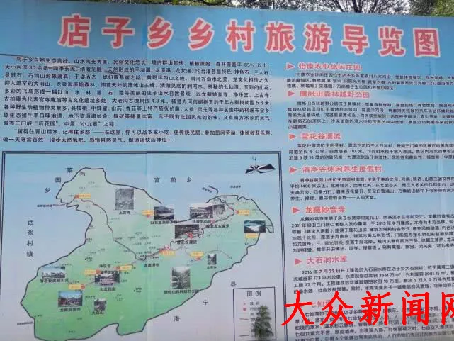 三門峽市人民政府官網(wǎng)的一則新聞報道中,陜州區(qū)被定義為“是河南省非貧困縣(區(qū))貧困發(fā)生率較高的縣(區(qū))之一”。位于陜州區(qū)東南深山區(qū)、占全區(qū)區(qū)域面積十分之一、僅有4000多總?cè)丝诘牡曜余l(xiāng)盡管被譽為中原“小九寨”、三門峽“后花園”,自稱“中國最美鄉(xiāng)村”,但近些年脫貧攻堅工作依然是重點。矗立在店子鄉(xiāng)入境口的一排宣傳展板內(nèi)容顯示,該鄉(xiāng)意在依托當(dāng)?shù)刈匀簧鷳B(tài)良好、山水風(fēng)光秀美、民俗文化悠長等優(yōu)勢,發(fā)展蜂、牧、菌、藥、核桃、旅游六大產(chǎn)業(yè),助推脫貧攻堅工作。其鄉(xiāng)村旅游產(chǎn)業(yè)板塊中,“怡康農(nóng)業(yè)休閑莊園”排在第一位。