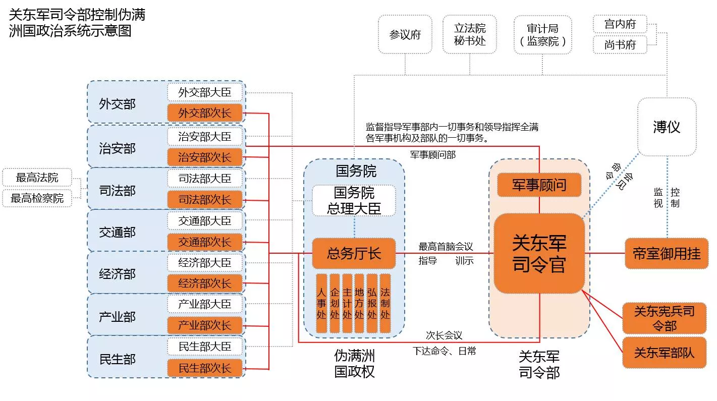 圖/關東軍司令部控制偽滿洲國政權體系示意圖(1938)[8]