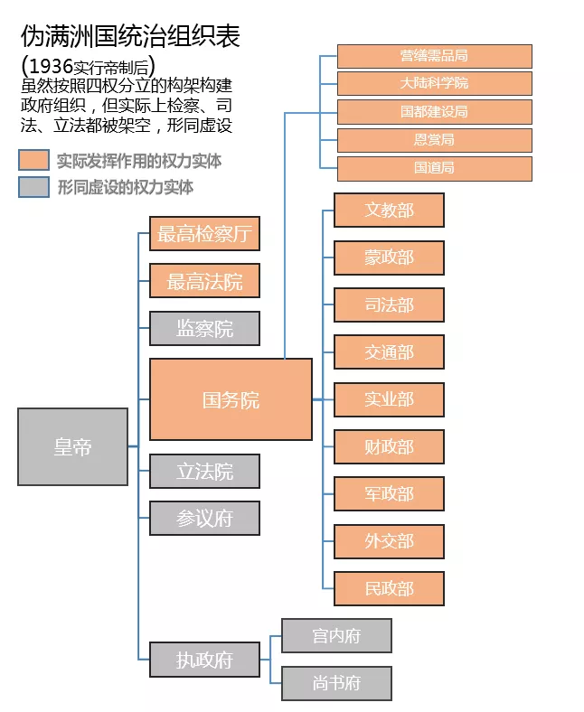圖/1936年的偽滿洲國統(tǒng)治組織架構表(根據(jù)歷史資料改繪)