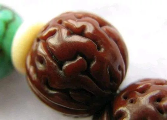 2、揉紅階段:剛下樹的核桃拿在手里感覺比較沉(俗稱:打手 ),木質(zhì)結(jié)構(gòu)較散、偏軟。隨著不停的把玩,手中的汗液和油脂揉進(jìn)核桃的里皮,核桃自身的水分蒸發(fā),逐步置換成為的體液,最后達(dá)到基本飽和的狀態(tài)。經(jīng)過長時(shí)間的把玩和搓揉,核桃本身的質(zhì)地會發(fā)生變化,水分蒸發(fā)、體積縮小、重量略輕、木質(zhì)也逐漸的堅(jiān)硬起來。這個(gè)時(shí)候仔細(xì)觀察會發(fā)現(xiàn),手中的寶貝外觀在悄悄的發(fā)生著變化,逐漸的變紅,這就是要開始上漿的表現(xiàn),手中的寶貝隨著把玩時(shí)間的推移自然達(dá)到由上漿逐步到包漿程度。此時(shí)拿一只新核桃比較,差異較大,會有成就感,增加了不少樂趣。在把玩過程中手掌分泌物的多寡、溫度高低對于色澤的演變會產(chǎn)生不同程度的差異,分泌物越多、溫度越高把玩后上色越快,色澤越厚重,采取“搓”和“揉”的手法,亮和紅的現(xiàn)象有時(shí)可以同時(shí)體現(xiàn)。揉紅階段就是由上漿到包漿的過程,把玩時(shí)間和方法不變,達(dá)到剛剛開始上漿的程度大約需要三至六個(gè)月的時(shí)間。