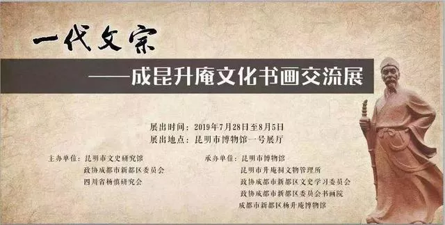此次展覽,由昆明市文史研究館、 政協(xié)成都市新都區(qū)委員會(huì)、四川省楊慎研究會(huì)主辦,由昆明市博物館、昆明市升庵祠文物管理所、政協(xié)成都市新都區(qū)文史學(xué)習(xí)委員會(huì)、政協(xié)成都市新都區(qū)委員會(huì)書(shū)畫(huà)院、成都市新都區(qū)楊升庵博物館承辦。