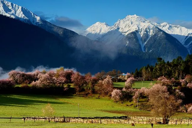 在西藏有這樣一個地方值得去折騰一番。它位于雅魯藏布大峽谷景區(qū)的深處,西鄰吞白村,位于南迦巴瓦的西南方向。這里是觀察中國最美山峰的最佳地點,春天到來時,索松村猶如被雪山和桃花包裹起來的世外桃源般美麗。林芝的索松村坐落在幾百米高的山崖上,崖下是奔騰不息,滾滾而來的雅魯藏布江。抬起頭便是"中國十大名山之首"的南迦巴瓦。這個喜馬拉雅山東端最高的山峰,有著三角形狀的峰體和終年不化的積雪,加上云煙