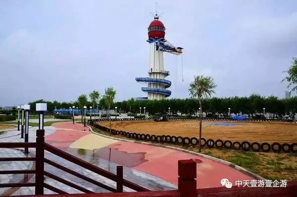 塔在26米之外。一條230米長的藍色滑梯,像龍的盤柱,順?biāo)?。游客可自由選擇二人、三人或四人摩托艇順流而下,蜿蜒暢游,沖入大海,享受快速漂流、釋放身心的巨大樂趣。