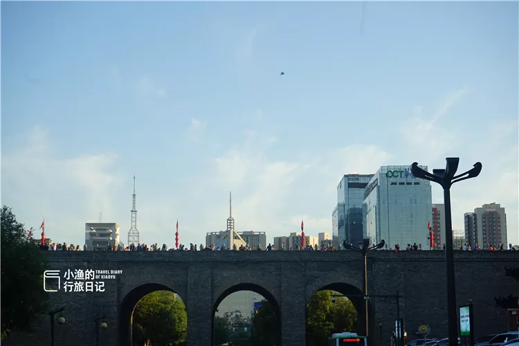 在落日昏黃的余暉中,緩緩的走在城墻腳下,看著綠樹隨風(fēng)擺動(dòng),河水粼粼微波,石塊青青綿延漸遠(yuǎn),聽著鳥兒啁啾,看著燈光點(diǎn)點(diǎn),會(huì)有一種時(shí)光穿越的錯(cuò)覺,不知是古還是今。