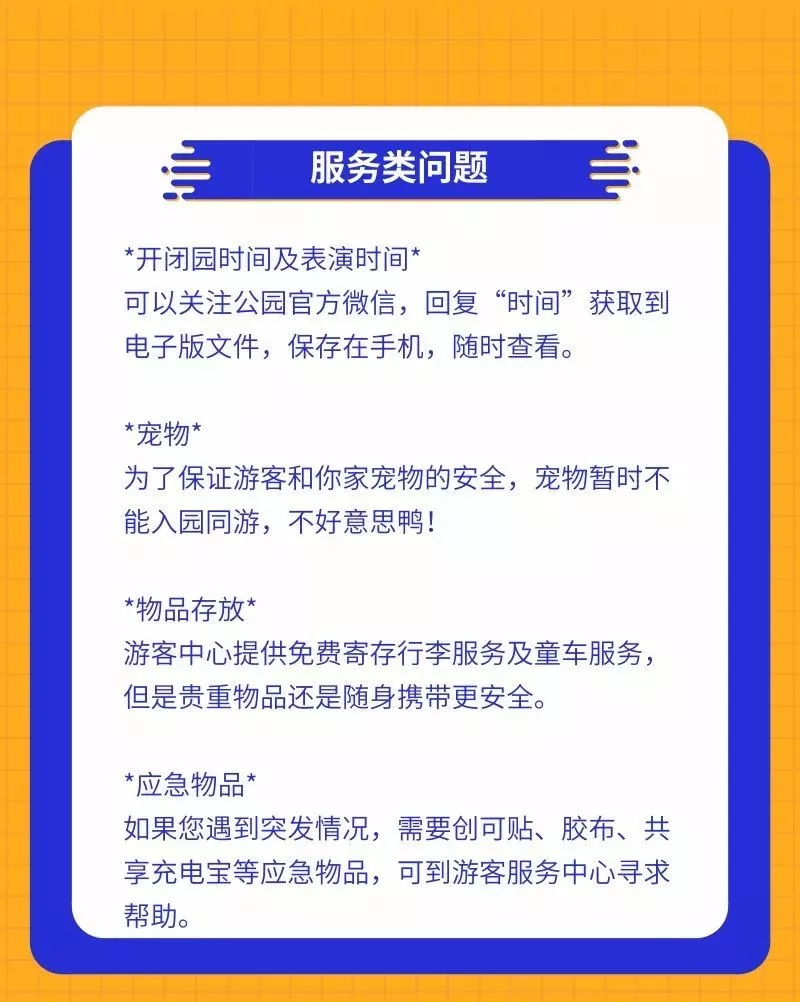 以上信息為2019年10月8日更新,可能公園政策隨時有調(diào)整,具體請以公園當(dāng)日實際公告信息為準(zhǔn)。