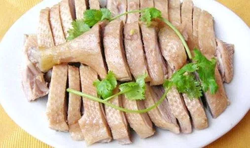 吳山貢鵝,又名吳王貢鵝,起源于吳山鎮(zhèn),是安徽合肥的傳統(tǒng)名菜,色澤清爽, 香氣濃郁, 味美醇厚,回味無窮。名菜典故由來,唐末五代十國期間,吳國的創(chuàng)立者楊行密攻廬州(今合肥)、克淮南、伐江夏,后占有淮河以南、長江以東的三十余州地盤,被唐昭宗封為吳王。他為官清廉,人民安居樂業(yè),并以身作則,使屬下均能如此,實(shí)屬難得。吳王每巡視淮南, 故鄉(xiāng)人民必以當(dāng)?shù)靥禺a(chǎn)“大白鵝”配美味佐料制成“鹵鵝” 敬奉, 吳王食之大悅,謂眾人曰:行密自幼貧寒,不敢忘本,以此鹵鵝進(jìn)餐,堪稱“貢品”?!皡峭踟曺Z”因此得名。后由產(chǎn)自吳山,俗稱“吳