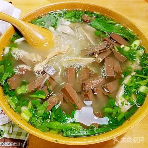 鴨血粉絲湯是江蘇的特色名吃,是久負(fù)盛名以鴨為特色的美食之一。鴨血粉絲湯由鴨血、鴨腸、鴨肝等加入鴨湯和粉絲制成。以其口味平和,鮮香爽滑的特點(diǎn),以及南北皆宜的口味特色,風(fēng)靡于全國(guó)各地。鴨血粉絲湯為迎合各地飲食特色進(jìn)行改良,在制作時(shí),各地均有不同,不過不論是鴨湯的烹制,還是鴨血、鴨肝與鴨腸的制作,都采用的是傳統(tǒng)制作金陵鹽水鴨的方法。昆山的鴨血粉絲湯鴨血紫紅、粉絲剔透、香菜青綠,在青花瓷碗的襯托下,就那么自然貼切地和睦相處,有著一份桃紅柳綠的素雅,帶著一種煙雨江南的滋味。