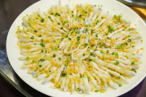 蒜蓉蒸沙蟲 蒜蓉蒸沙蟲是著名的湛江菜之一,屬于粵菜系,是湛江特色海鮮菜肴,此菜選用湛江海產(chǎn)品沙蟲制作而成,在湛江各沿海村莊,成群結(jié)隊的婦女在退潮后的灘涂采挖沙蟲,這種沙蟲有滋陰補腎養(yǎng)液之功效,市民喜歡用它煲湯、煮粥,口感清甜。蒜蒸沙蟲是最常見的廣東吃法,此菜鮮美、新鮮、甘甜、濃郁。由于它外觀難看很多外地人都不敢下筷,但吃起來肉厚油肥鮮嫩,且有嚼頭,愈嚼愈鮮,百食不厭。 贊 (0) 39 151 生成海報 清蒸花蟹 下一篇 2008-08-08 蒜蓉蒸鮑魚 上一篇 2008-08-08 相關(guān)推薦