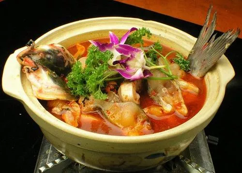 大理砂鍋魚是大理名菜之一,成名于清末民初,由砂鍋魚頭發(fā)展而來(lái),集中了白族魚味的精華,邊烹邊吃,配以豆腐、火腿、豆芽、肉丸子等食物,營(yíng)養(yǎng)豐富、味道鮮美,是大理白族款待賓客的佳肴,也是大理一道經(jīng)典傳統(tǒng)名菜。此菜上席時(shí)以菜葉鋪墊的大盤襯墊,鍋中沸滾,飄紅映綠,色彩絢麗,清香撲鼻。趁熱食用,魚肉滋嫩、味道鮮美,營(yíng)養(yǎng)豐富。據(jù)Maigoo小編了解,游客可在洱海游船上,以及下關(guān)或大理各大飯店品嘗得到這道大理砂鍋魚名肴。