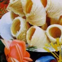 隴縣馬蹄酥 陜西 隴縣馬蹄酥,又名蜜餡兒,因成品四周厚、中間薄、形似馬蹄而得其名,為江陰傳統(tǒng)特色糕點。該產(chǎn)品采用上等面粉、赤豆為原料,加果仁為輔料,用糯米發(fā)酵后制成,其特點為酥、松、軟兼?zhèn)洌?、香、味俱佳,配料精良,制作?xì)致,層多松軟,油而不膩,香甜味厚,入口即酥。中文名:隴縣馬蹄酥別名:蜜餡兒特點:因形似馬蹄而得名地區(qū):陜西食材:面粉、糖油等 贊 (0) 39 151 生成海報 豆腐包子 下一篇 2008-08-08 鳳翔臘驢肉 上一篇 2008-08-08 相關(guān)推薦