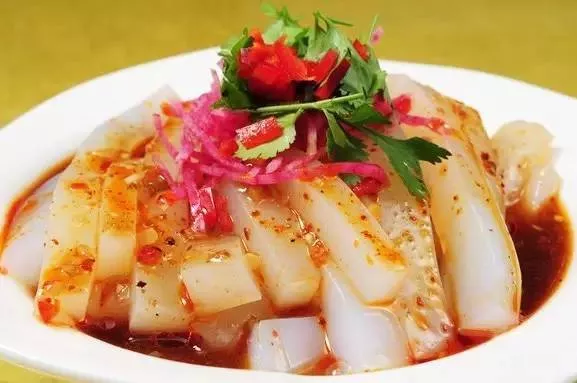 天水涼粉是甘肅天水地區(qū)漢族特色小吃,品種繁多,風(fēng)味各異,制作考究,佐料獨特。用蕎麥制成的涼粉柔軟滑爽,用豌豆制作的涼粉晶瑩透亮,還有用扁豆、粉面等制作的涼粉。其中用養(yǎng)麥制作的涼粉工藝復(fù)雜,風(fēng)味俱佳。蕎麥涼粉食用時,可削成長條形薄片,也可用專用的“撈撈”撈成長粉條狀,盛入碗中,調(diào)入油潑辣子、芝麻醬、醋、醬油、芥末、蒜泥、精鹽、花椒面等佐料,吃起來咸、酸、香、辣、鮮諸味俱全。特別在盛夏時節(jié),一碗涼粉下肚,全身涼爽,暑氣全消。在吃主食時,配以涼粉,往往使人食欲大增,胃口大開。