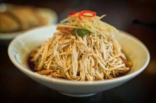 燙干絲是江蘇揚州和泰州一帶傳統(tǒng)的特色美食小吃,早茶名點之一,江蘇特色美食小吃色澤素雅,軟嫩異常,鮮美雋永。在燙干絲中,揚州燙干絲與泰州燙干絲在原料和加工工藝上有些許不同,也形成了兩地燙干絲的不同口感與風味。作為揚州名點心燙干絲,朱自清在《說揚州》里也提到過燙干絲:"燙干絲先將一大塊方的豆腐干飛快地切成薄片,再切為細絲,放在小碗里用開水一澆,干絲便熟了,潷去水,再澆上鹵汁,色澤素雅,軟嫩異常,鮮美雋永。這個菜做法很簡單,味道和口感都很好。燙干絲也被中國烹飪協(xié)會評選為江蘇榜“中國地域十大名小吃”。【