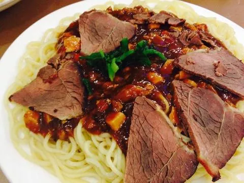 驢肉黃面是敦煌的一道名吃,號(hào)稱中華一絕,顧名思義,就是一盤驢肉作菜,配手工拉制的黃面作主食,是敦煌民間流傳久遠(yuǎn)的吃法。黃面細(xì)如龍須,長(zhǎng)如金線,柔韌耐拉,調(diào)湯或加菜食用,香味溢口。制作黃面的工藝極其講究,選用上等小麥粉配以沙漠堿性植物,經(jīng)拉面師揉、撬、甩條等多種手工工序精心制作而成,煮熟后的面條略顯黃色,故稱其為黃面。以其面長(zhǎng)勻稱、筋道透亮,為面食中之精品。黃面更是被中國烹飪協(xié)會(huì)評(píng)選為“中國地域十大名小吃”,而敦煌驢肉黃面尤以達(dá)記醬驢肉黃面比較有名,于1988年被敦煌市政府授予“敦煌風(fēng)味小吃”,還被中國烹飪