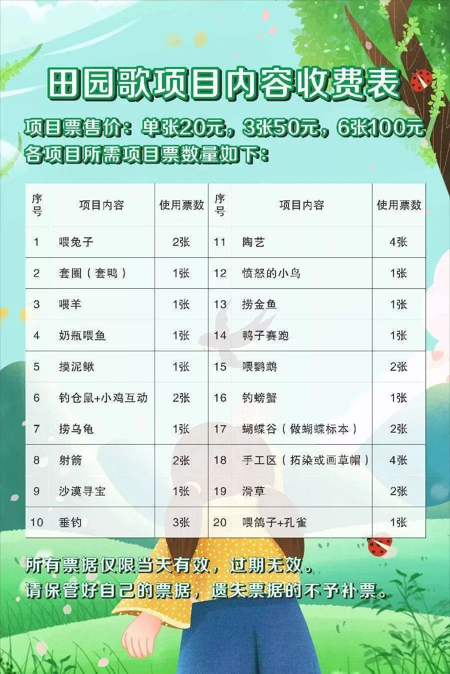 2. 景區(qū)內(nèi)6張項(xiàng)目小票(按所選的套餐為準(zhǔn),農(nóng)場(chǎng)內(nèi)親子項(xiàng)目可以任選游玩,詳情看下表)