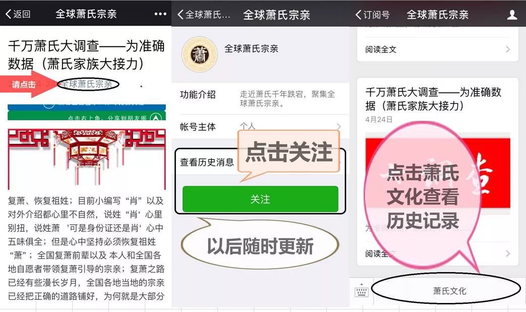 查看全球蕭氏宗親——通訊錄——公眾號——全球蕭氏宗親——蕭氏文化