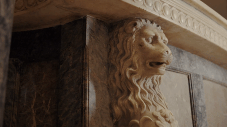 在石柱兩側(cè),分布著24組漢白玉石獅柱,由百年前意大利海運過來的石料制成,雕琢精致,形態(tài)各具特色。