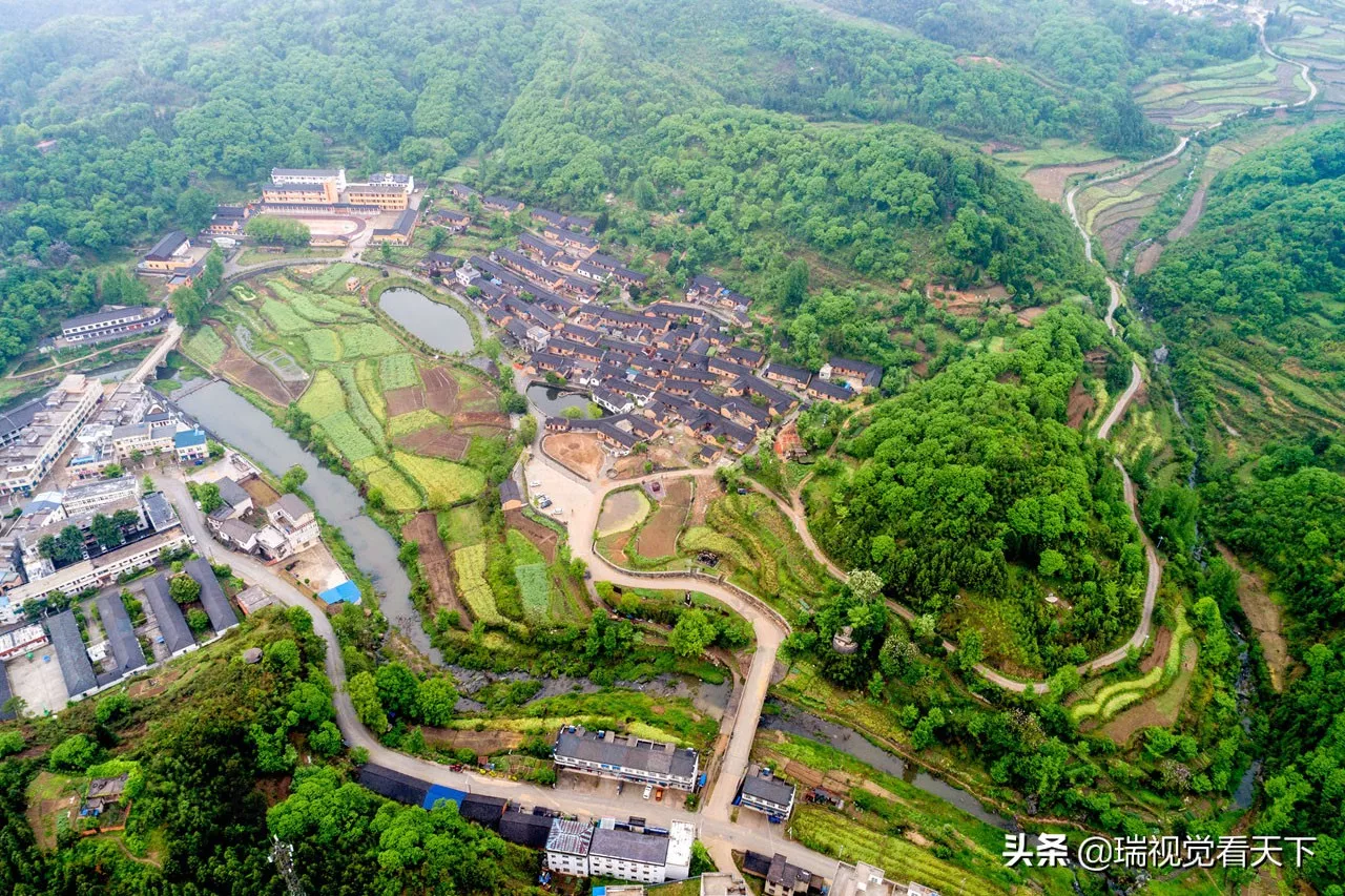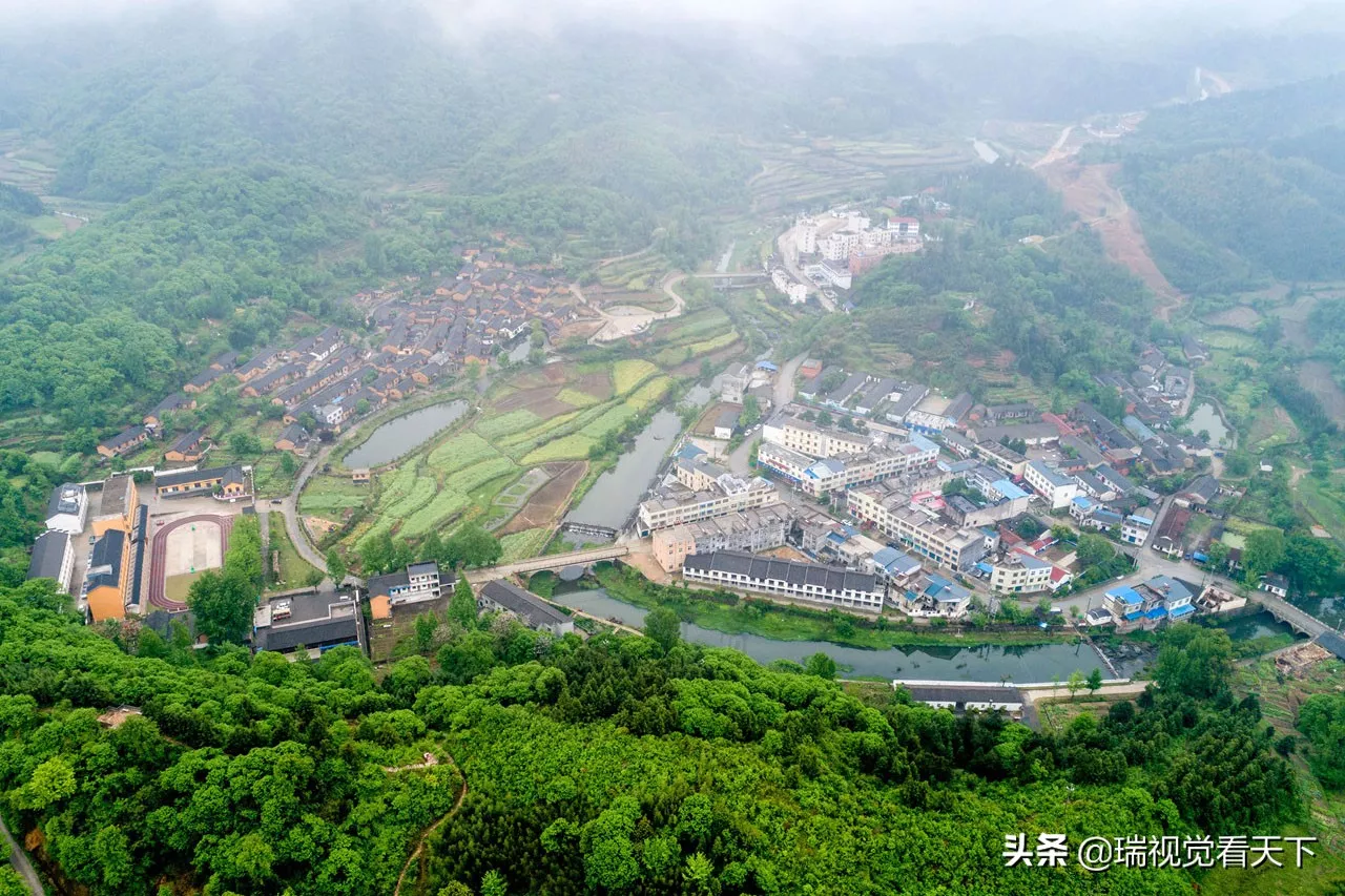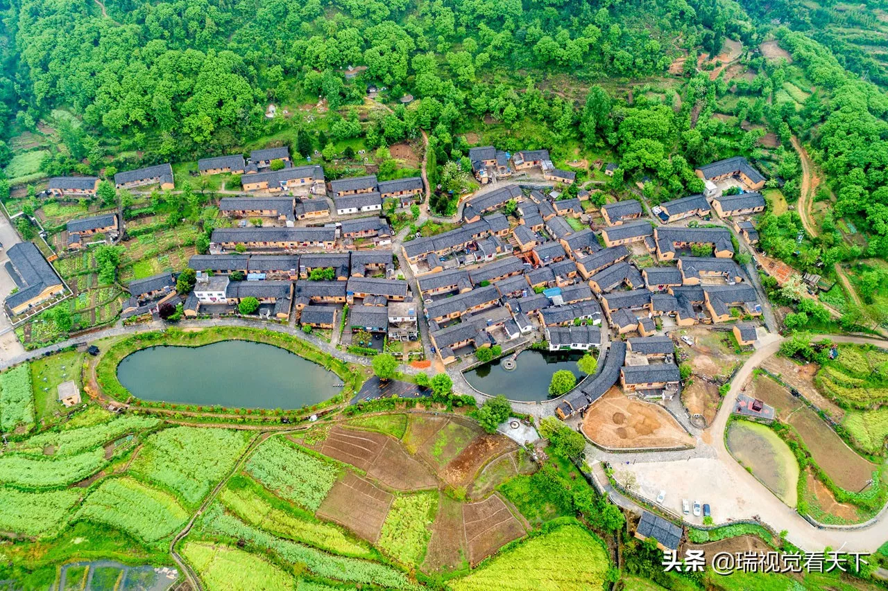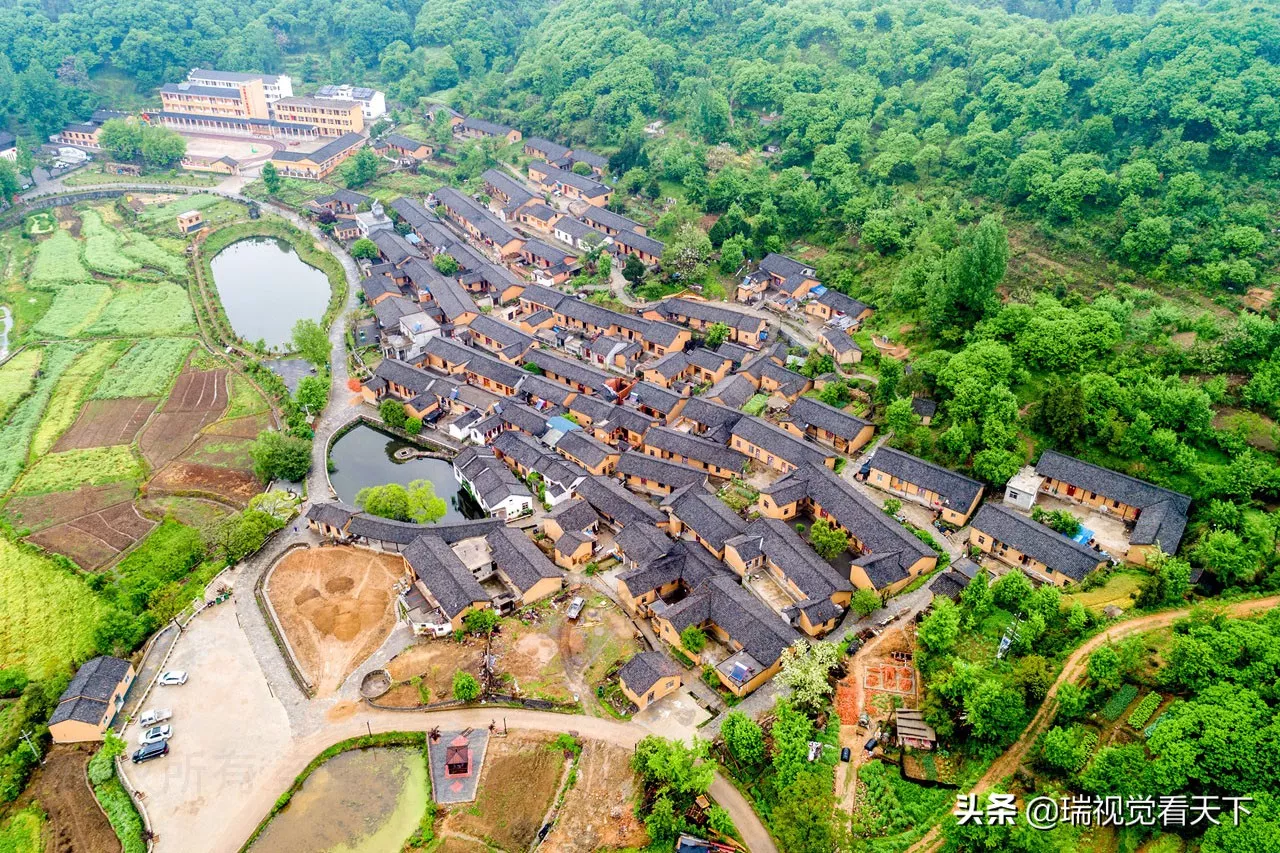 無人機航拍的河南省新縣田鋪鄉(xiāng)田鋪大塆村(右上角黑房頂)。田鋪大塆村位于新縣縣城去開國上將許世友將軍故里的路北側(cè),前行不遠即是。30個小時前,一個人的到來,使這個小村吸引了世人的目光。(王子瑞攝)坐落于大別山青山嶺下的田鋪大塆村,坐北朝南,距新縣縣城24公里,距許世友將軍故里7.5公里,山清水秀。近年來,該村依托紅色旅游資源,打造創(chuàng)客小鎮(zhèn)、發(fā)展鄉(xiāng)村旅游業(yè),推動了鄉(xiāng)村振興。位于大別山腹地的
