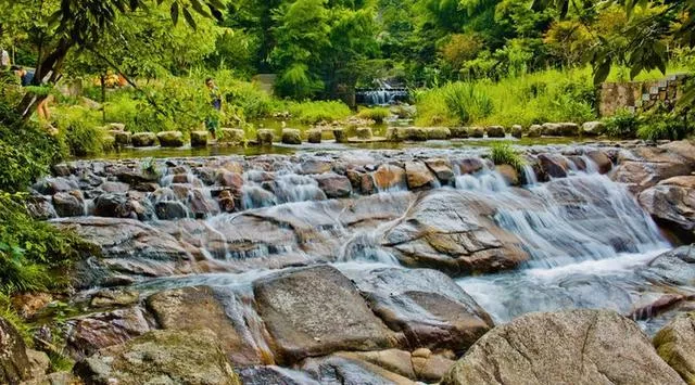 走進石梁飛瀑布景區(qū),沿著鵝卵石鋪成的石路,左邊是涓涓細流,游客們將穿梭在森林中欣賞美麗的景色,然后他們會來到徐霞客的雕像前,想象徐霞客來訪的場景,因為徐霞客不止一次參觀過石梁瀑布,所以石梁瀑布成了一些游客追隨徐霞客腳步的地方。