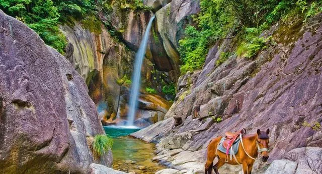 石梁飛瀑布是世界上極為罕見的“花崗石橋”,它像一座蒼龍嶺,坐落在兩座山的懸崖上,這在世界上是極其巧妙和罕見的,”瀑布“三折后穿過橫梁,然后從40米高的懸崖上馳騁而下,顏色如霜,聲音如雷,雖然不是最震撼,但卻是最特別的。