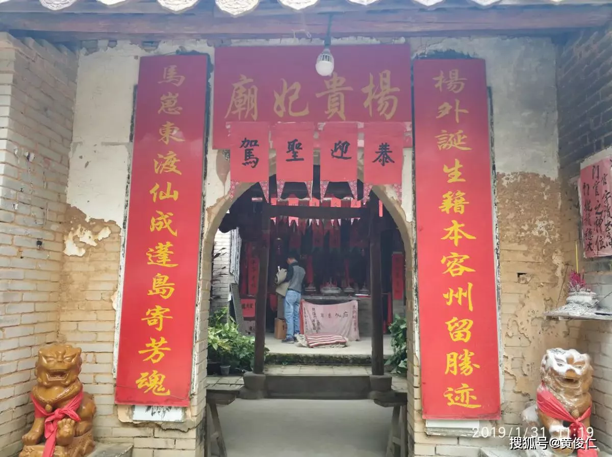 貴妃廟位于楊外村村西的一個(gè)土坡上,為古代村人紀(jì)念貴妃而建。此廟解放后仍保存,1965年折毀,近年村民又在原址重建,廟堂正中供奉貴妃塑像。廟門兩側(cè)楹聯(lián)題為:“楊外誕生籍本容州留騰跡,馬嵬東渡仙成逢島寄芳魂”。