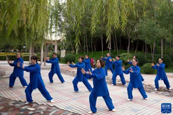 10月10日,市民在黃驊市文星湖公園練習(xí)太極拳。