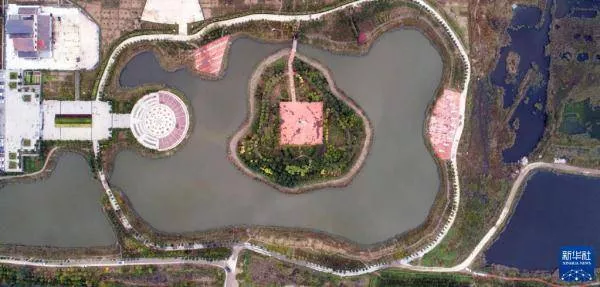 經(jīng)過(guò)禪意廣場(chǎng),大片的荷塘長(zhǎng)滿了荷葉,許多睡蓮點(diǎn)綴其中,在荷塘中心佇立著一座巨大的鼎,工作人員領(lǐng)著媒體記者們爬上九州鼎,最高處可以觀覽綠油油的荷塘全景?!熬胖荻Ω?.9米,‘九’在我們的傳統(tǒng)文化里是一個(gè)大數(shù),我們這個(gè)鼎也是因?yàn)檫@個(gè)所以取名叫九州?!惫ぷ魅藛T介紹。