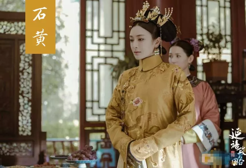 黃色五行屬中,象征中正帝統(tǒng),十分尊貴。唐代開始就只有皇族可以使用,而且黃色越純,權(quán)利越大。延禧攻略眾佳麗中,只有皇后與貴妃才能使用金黃色,皇后的宮裝接近中國(guó)傳統(tǒng)的石黃,別名雌黃,和金色接近。