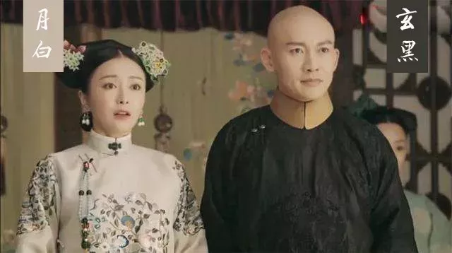 玄黑則是中國(guó)古代帝王的正統(tǒng)色,君王的衣服、宮殿多用這種黑色裝飾,《延禧攻略》中,身旁月白旗裝的富察皇后和身穿黑色龍袍的乾隆皇帝并立一處,給人的感覺是無比得相得益彰。