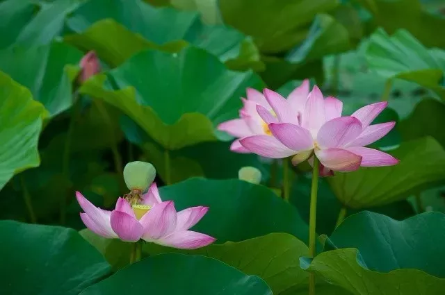 7月中下旬,龍鳳山莊荷花初綻,大片的荷葉葳蕤,幾乎將湖面完全遮蓋,碧波蕩漾,藕香陣陣,沁人心脾。